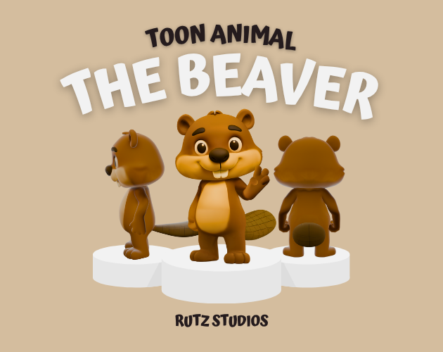 A cheerful toon beaver for your games and animations. Humanoid-rigged FBX, 4 LODs (~18k → ~5k verts), and PBR PNG textures (incl. shaded diffuse). Drop-in ready for Unity, Unreal, Blender, and more.